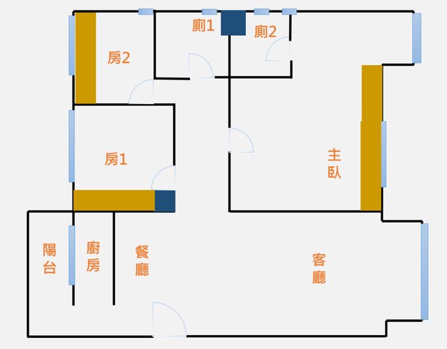 客廳主臥可以看得見101、每間廁所都有開窗;隔間還在想怎麼搞...