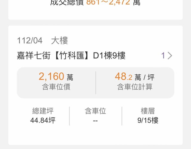 : 在591上看到最近竹科匯的實價登錄價格已經回到3x萬