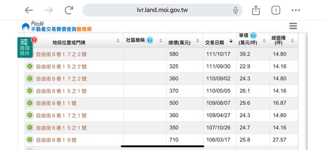 本物件附近地址實價登錄 :