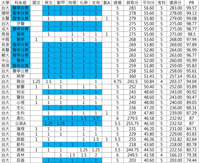 同樣是283分 國/英/數甲/物/化的PR就強過英/數甲/物/化/生的PR