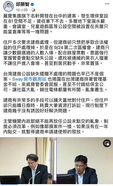 不囉嗦,直接點名麗寶集團公設有問題就是解決提出問題的人,就看政府後續如何處理公