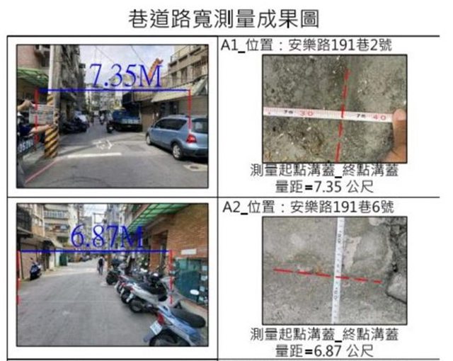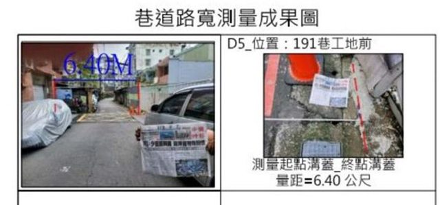經現場實地測量結果,「華鋐晴晨」建案接臨道路多處不足8米,明顯不符相關規定。
