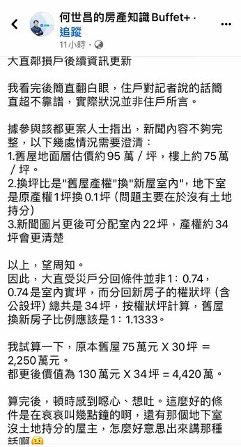 標題Re: [新聞] 基泰大直損鄰公辦都更說明會 無法一坪換