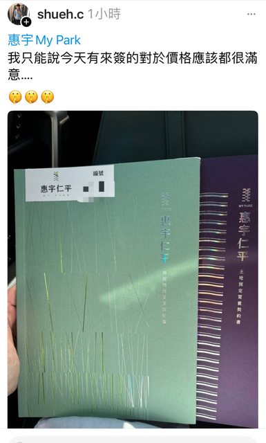 : 這案子今天開始賣,聽說這個惠宇14期仁平新案價格跟之前grand差不多,新案還是公園