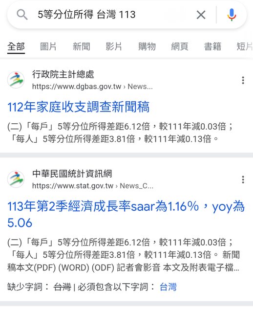 : 今年4月底,主計總處公布家庭財富分配統計。五等分位的家庭財富差距倍數自30年前的1