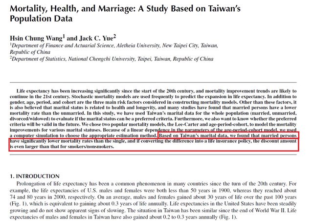 : 上面是台灣自己的研究,結論還是一樣:婚姻對壽命有保護效果