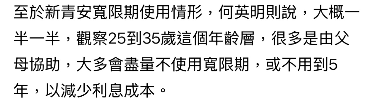 不過,土銀認為,新青安對於房貸、房市影響還是頗深,因為新青安有5年的寬限期,這5