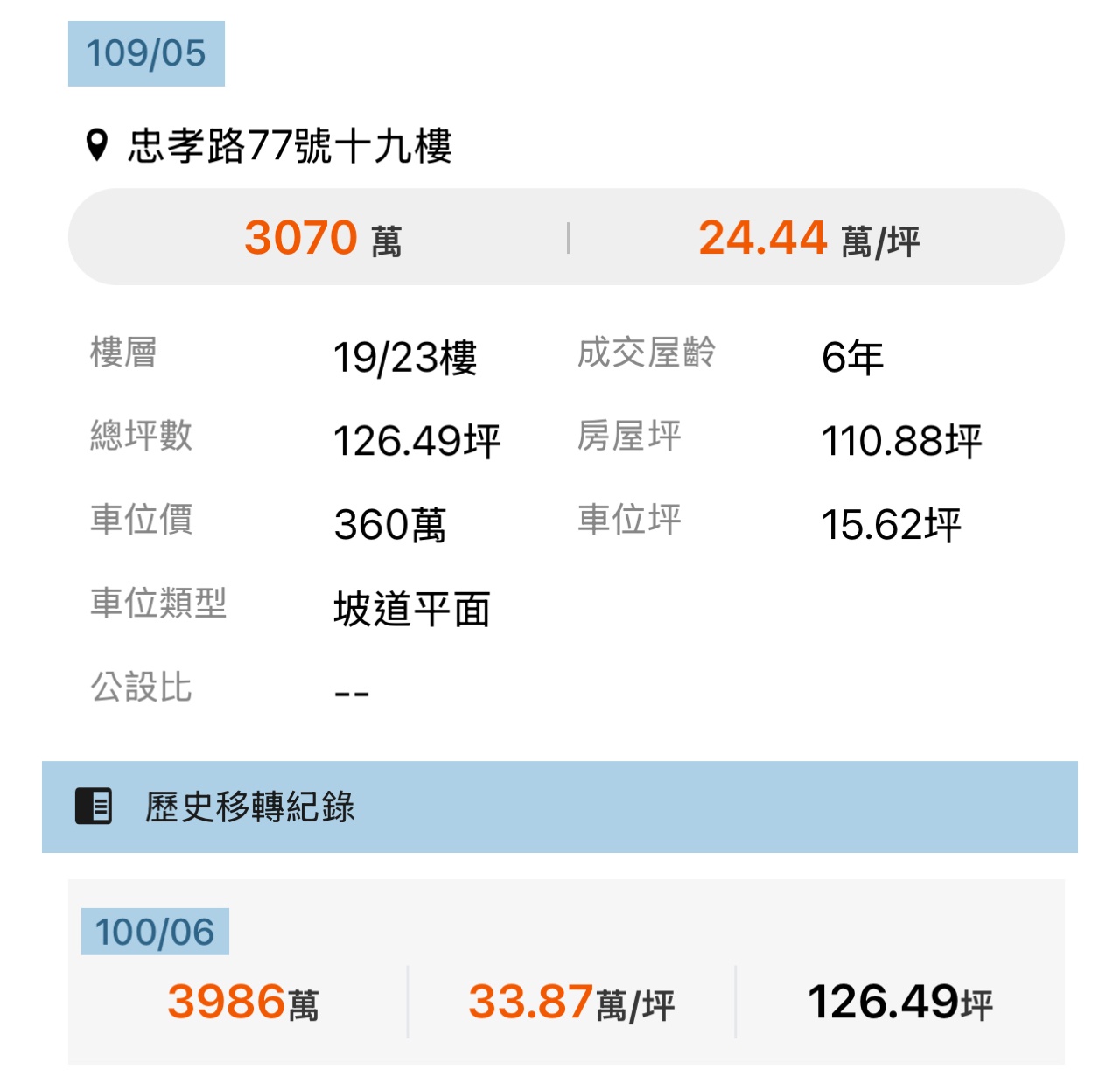 本物件兩年內上一筆實價登錄: 無