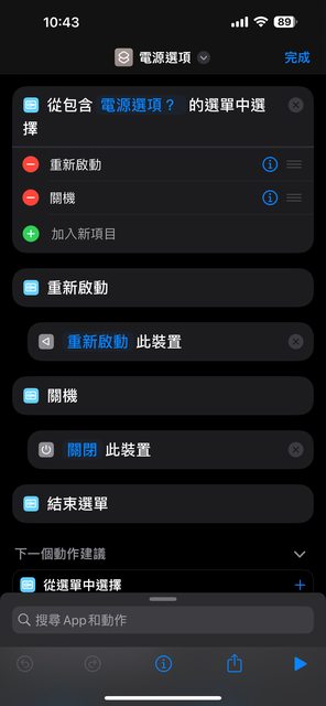 ,然後拖曳來關機,這個過程還蠻麻煩的,所以動作按鈕就可以派上用場。實際用起來是覺