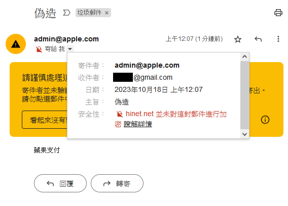 → Qinsect : 商會幫忙檢查寄件者的網域有沒有經過認證,如果無 10/18 00:14