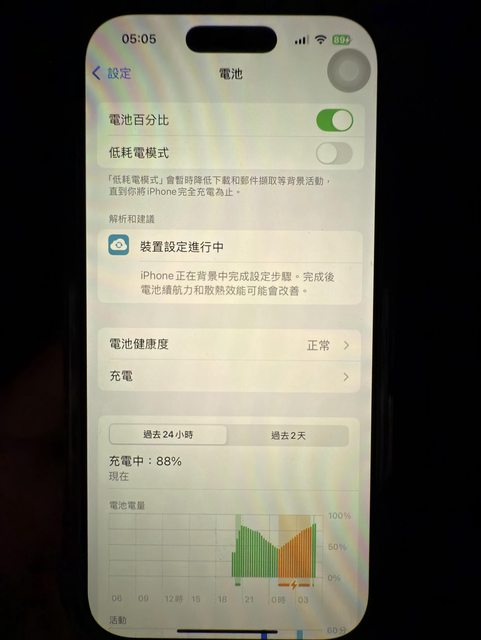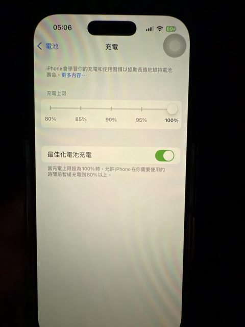 (如果是最佳化電池充電,同時睡覺的我們我的應該也要說停在80幾%)