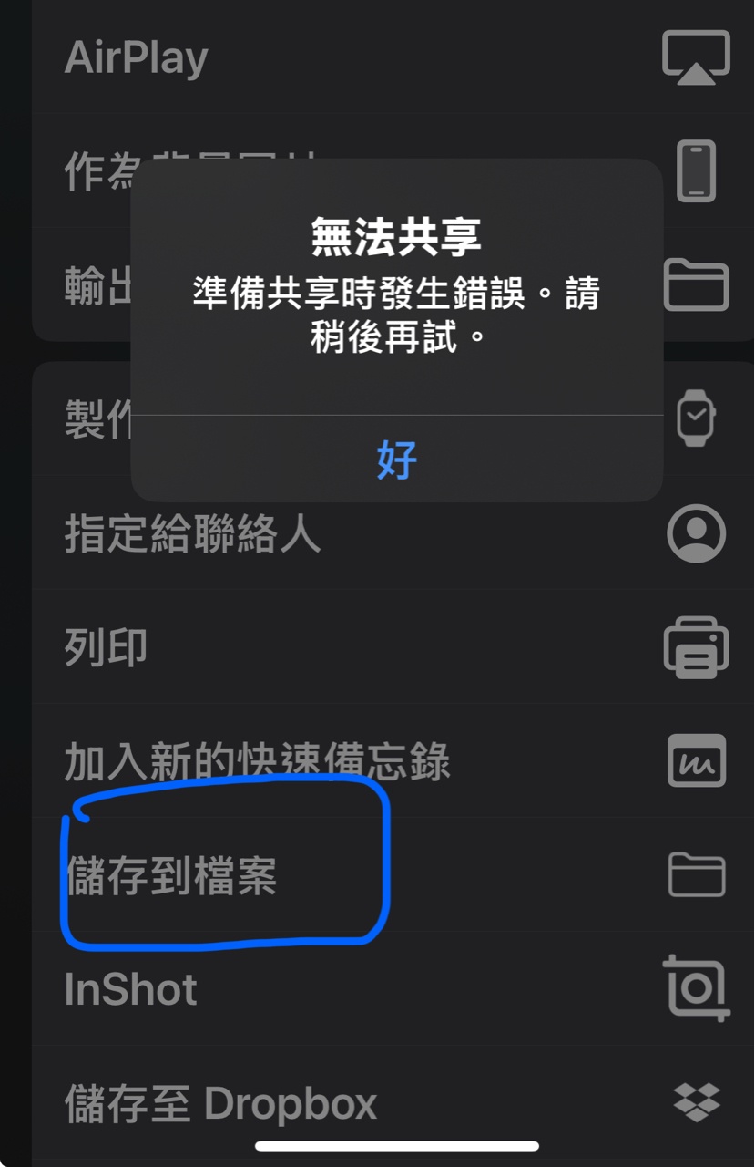 影片皆未超過20秒)發現出現「準備共享時發生錯誤」!