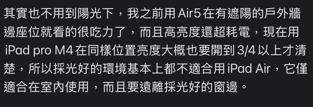 推 Xperia: 嚴格說所有平板裡只有iPad Pro m4適合戶外用 10/21 12:36
