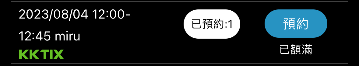 推 TRFgee: 8/5 Miru 12:45 換同一天其他時段Miru 07/28 22:28