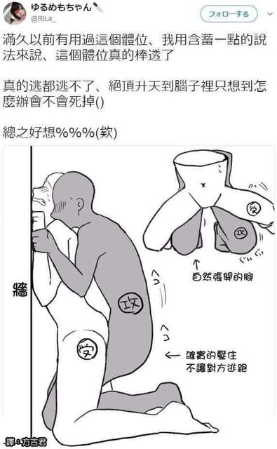 → Kust: 這是肛肛用的吧… 一般來說男女身高差很難用這姿勢陰道性交 09/30 03:54