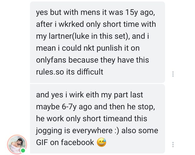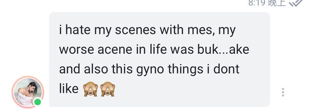 問他為什麼OF都沒有與男優交戰的影片和照片還有為什麼OF都是在室內拍攝,沒看到有出外