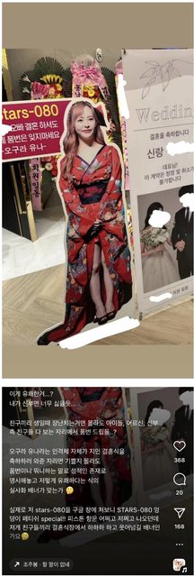 南韓婚禮上朋友送的AV女優看板迎客