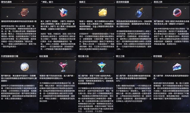 其餘沒有特別提及的奇物不是沒作用,只是更多作用在充數部分給骰面返利10碎