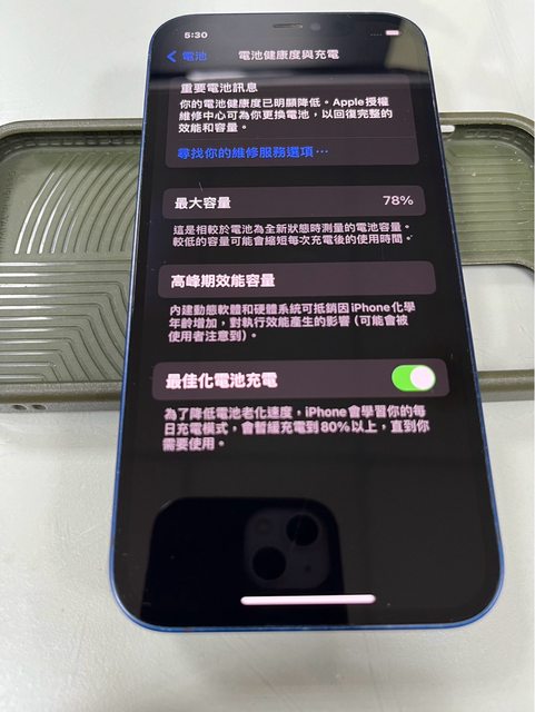 物品狀況:電池健康度78%(原廠電池沒換過)