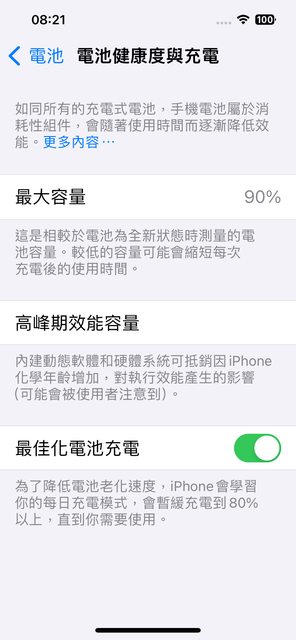 目前電池健康度90%