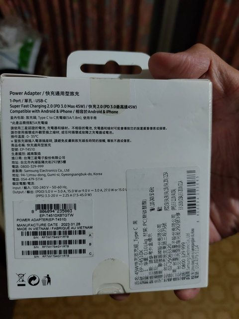 欲售物品:三星原廠 45W快充旅充組 Type-C (EP-T4510X)