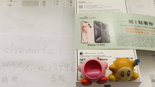 (2)面交時給買方確認為iPhone 15 Pro 256G 原鈦全新未拆 及 序號