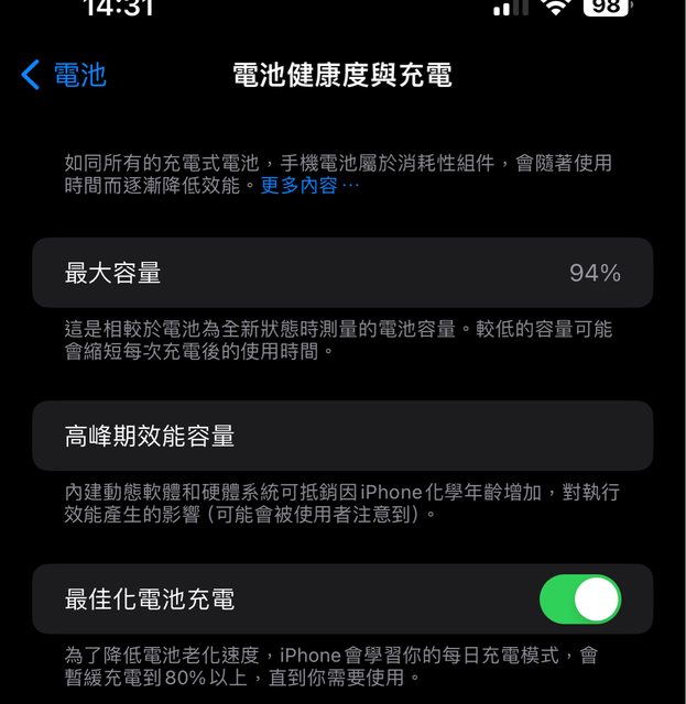 物品狀況:電池健康度94%