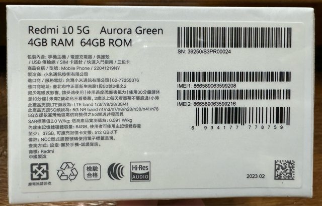 欲售物品: Redmi 10 5G Aurora Green 4GB/64GB