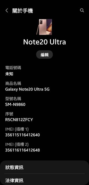 欲售物品:三星 note20 ultra 512G 白色 非行動裝置本體或其