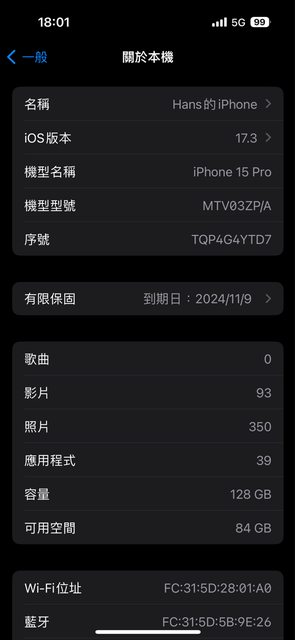 欲售物品:IPhone 15 pro 128g藍色