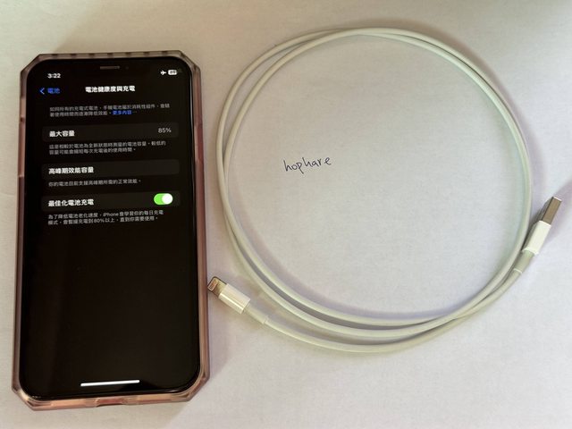 物品狀況:有使用保護殼、外觀無損傷、無送修、螢幕右上角有暗痕。電池健康度85%