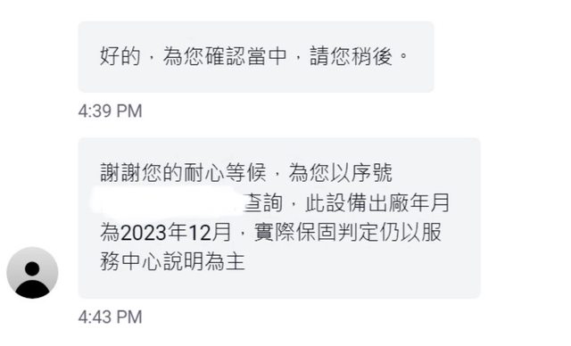 保固依出廠日期算到今年12月。