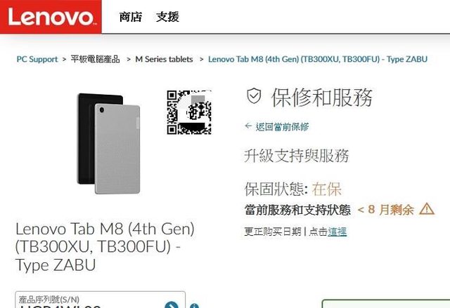 欲售物品:Lenovo Tab M8 4th Gen 4G+64G