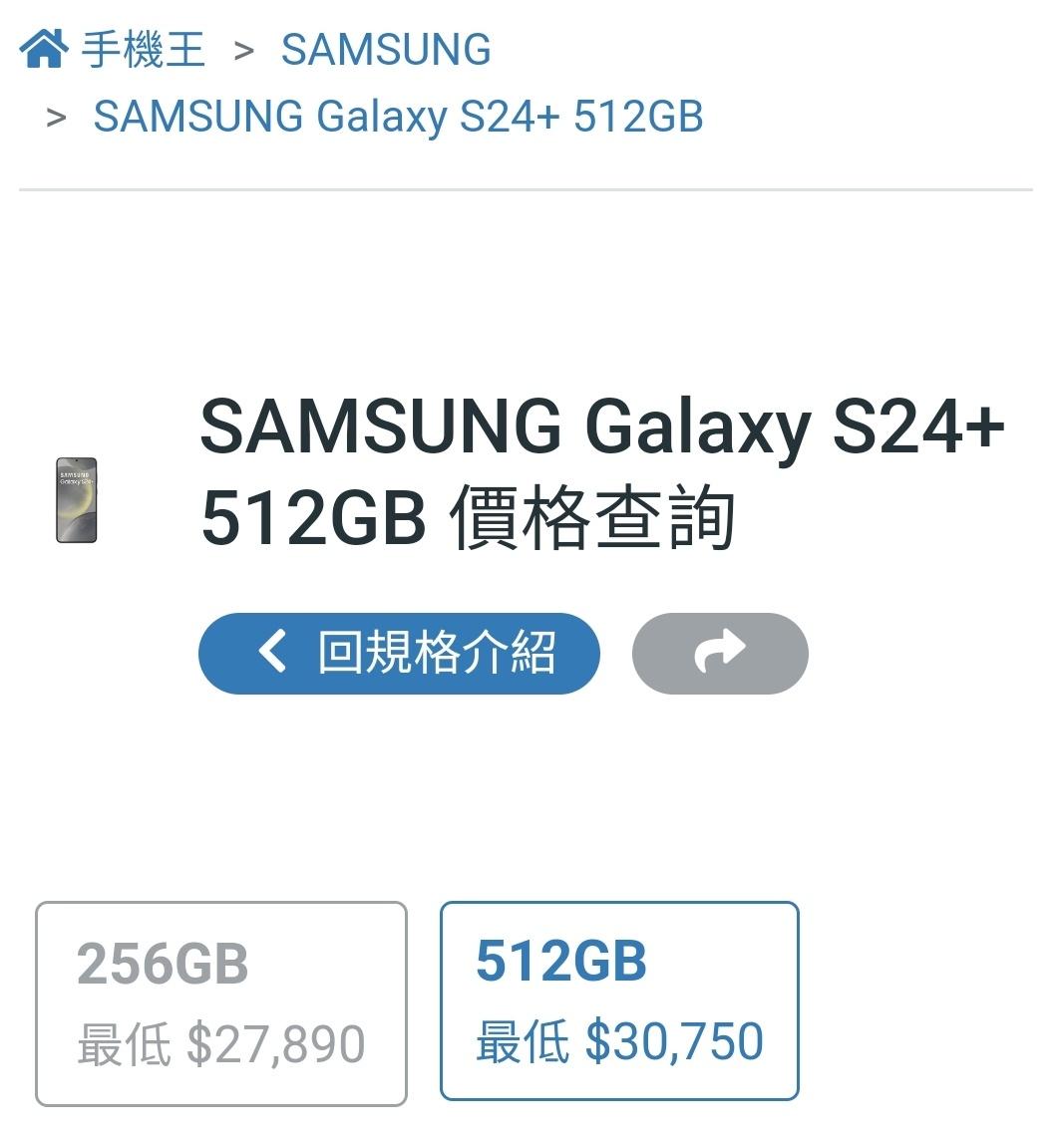 欲售物品:Samsung S24+ 512G 雲岩灰