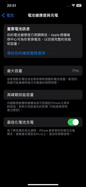 電池健康度71%已反映在價格