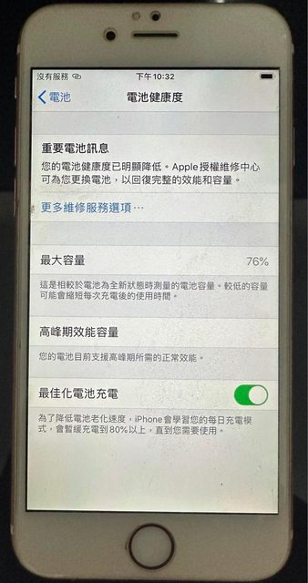 有換過電池 無送修紀錄 電池健康度76%