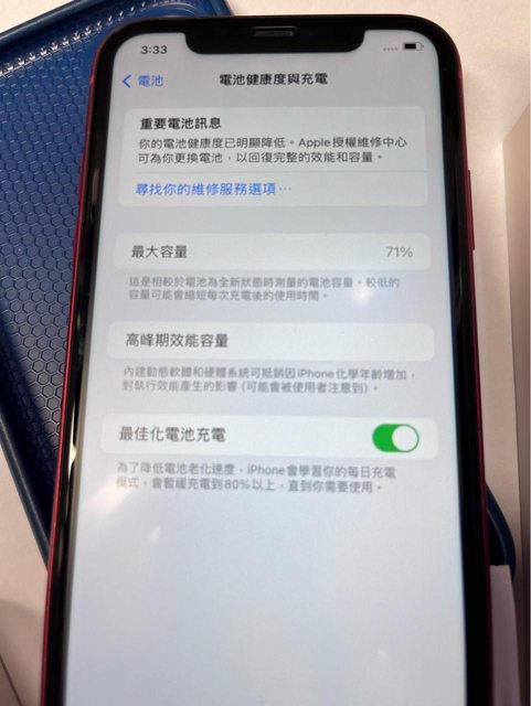 所以再附上原機拍攝的照片(白底)請面交時特別注意到這個部分,手機健康度71%,沒