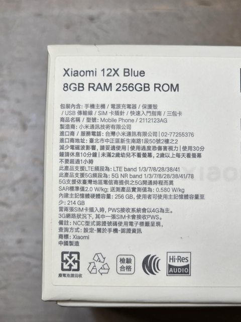 標題[賣/桃園/皆可] (已售出)小米12X 8G+256G 藍色