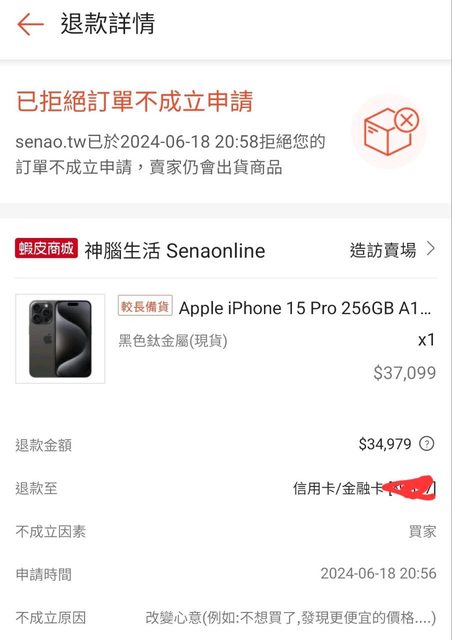 扣掉信用卡回饋後拿上來賣賣看,沒賣掉再另外申請退貨