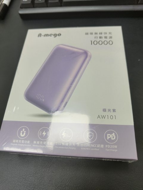 欲售物品:A-mego AW101 10000mAh磁吸無線快充行動電源 極光紫
