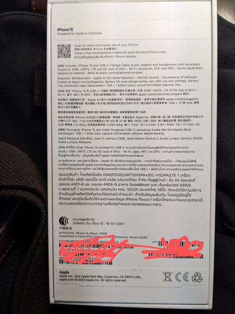 欲售物品:iPhone 15 128G 黑色 全新