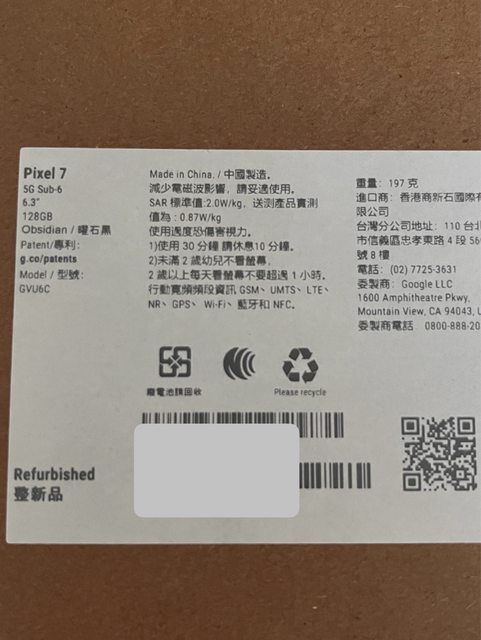 欲售物品:Google Pixel 7 128G 黑
