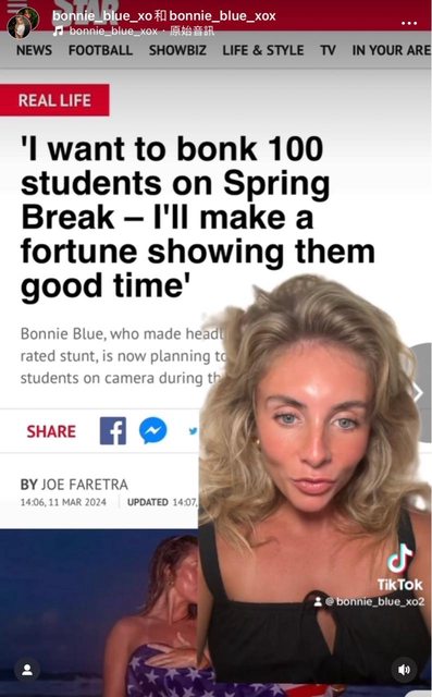 2名英國AV女優,直奔墨西哥海灘跟120名美國大學生肉搏。(圖/翻攝bonnie_blue_xo的
