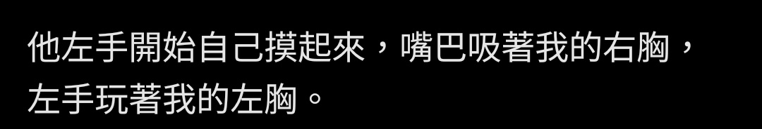 他左手開始自己摸起來,嘴巴吸著我的右胸,右手玩著我的左胸。