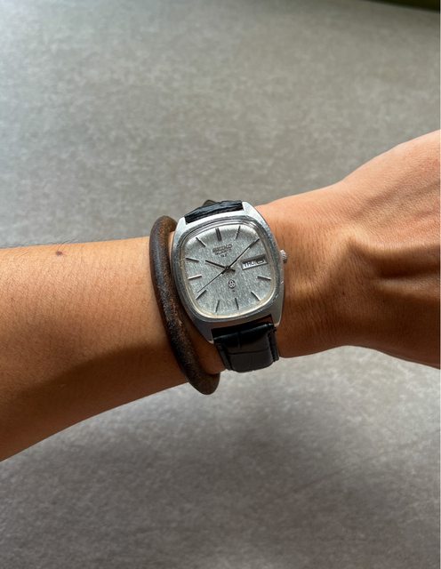 2.Seiko 老石英,1975年8月生產,面盤有點像現行款白樺樹,近看立體有層次感,灰色