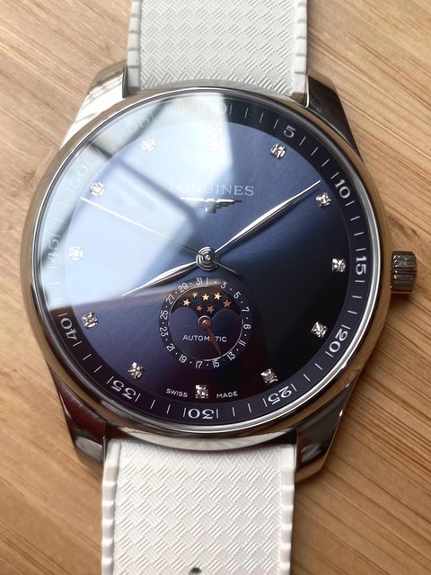 商品:Longines浪琴藍面真鑽月相鋼帶機械錶