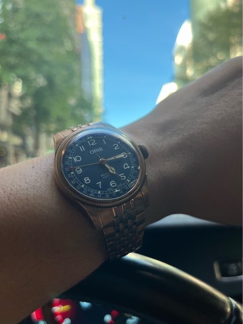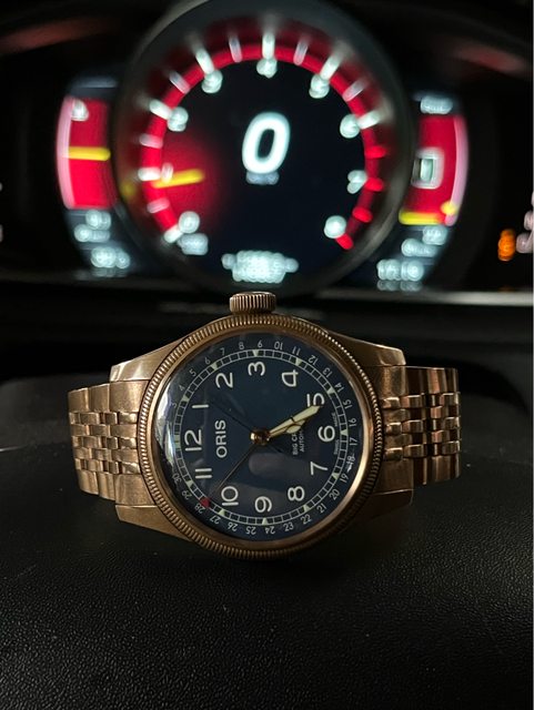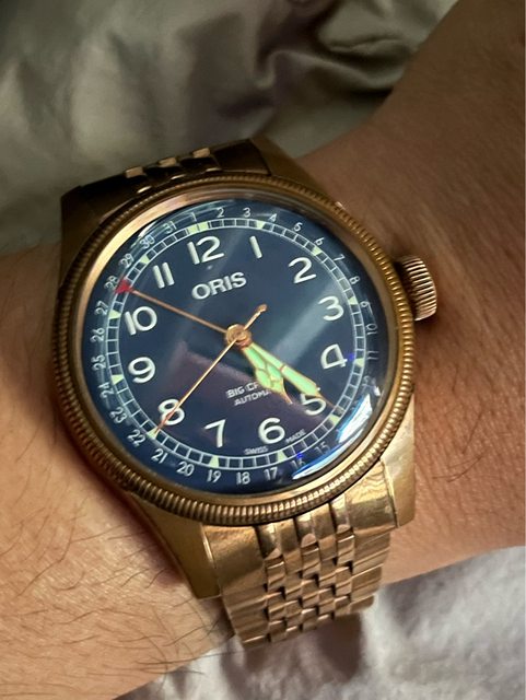 標題[賣錶] Oris Big Crown 藍面青銅錶鏈帶款