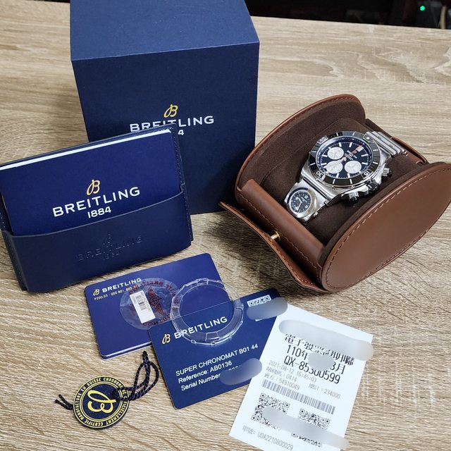 【配件】:百年靈內外錶盒,保證卡,說明書,皮套,吊牌,購入發票。