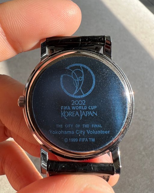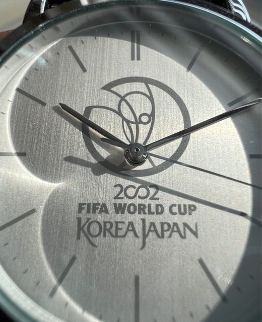 2. Seiko 石英2002年日韓合辦世界盃足球賽紀念錶,面盤直紋設計,中間以灰色調印有