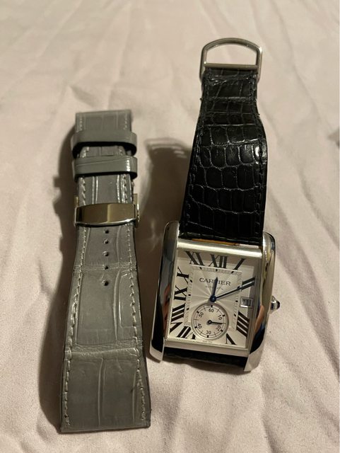 隨附物件:無盒單,單錶一只;有錶扣、副廠皮帶,都是鱷魚皮錶帶,灰色是沃坦制作的